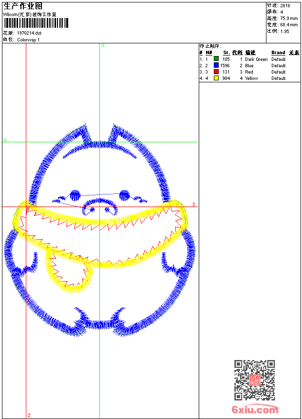 免费童装卡通花样 花版参数: 大小:8.76 KB / 尺寸:68*76[毫米] / 针数:2818针 / 线色:4 / 格式:dst / 版本:7 版带文件需绣花软件方可打开,可配色打印导出各种格式或直接上机绣。如无绣花软件可下载1:1模拟效果图。 图片信息:大小:54.38 kb 259 x 288(像素) dst下载 1:1图下载 关闭 花样推荐 免费童装卡通花样 免费童装卡通花样 免费童装卡通花样 免费童装卡通花样 免费童装卡通花样 免费童装卡通花样 免费童装卡通花样 免费童装卡通花样 免费童装卡通花样 免费童装卡通花样 上一个花样:免费童装卡通花样 下一个花样:免费童装卡通花样