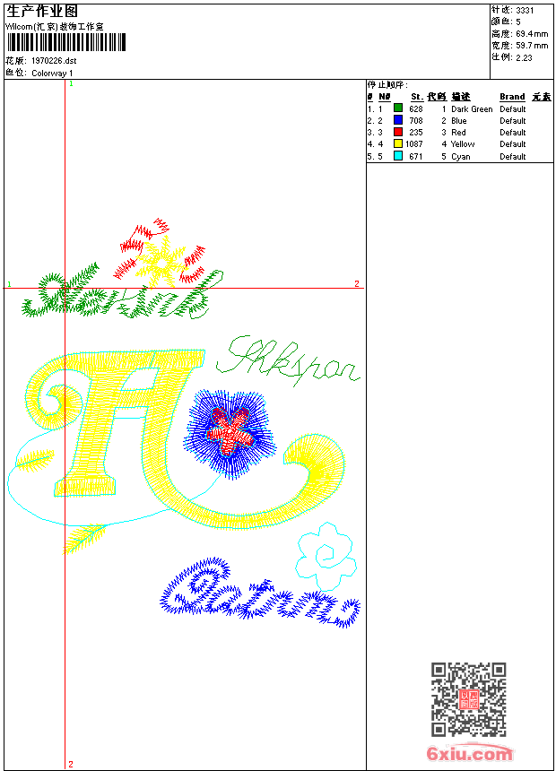 免费童装卡通花样 花版参数: 大小:10.26 KB / 尺寸:60*69[毫米] / 针数:3331针 / 线色:5 / 格式:dst / 版本:7 版带文件需绣花软件方可打开,可配色打印导出各种格式或直接上机绣。如无绣花软件可下载1:1模拟效果图。 图片信息:大小:56.32 kb 226 x 263(像素) dst下载 1:1图下载 关闭 花样推荐 免费童装卡通花样 免费童装卡通花样 免费童装卡通花样 免费童装卡通花样 免费童装卡通花样 免费童装卡通花样 免费童装卡通花样 免费童装卡通花样 免费童装卡通花样 免费童装卡通花样 上一个花样:免费童装卡通花样 下一个花样:免费童装卡通花样