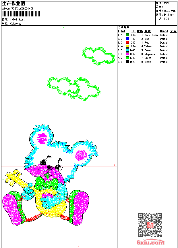 免费童装卡通花样 花版参数: 大小:22.48 KB / 尺寸:97*152[毫米] / 针数:7502针 / 线色:8 / 格式:dst / 版本:7 版带文件需绣花软件方可打开,可配色打印导出各种格式或直接上机绣。如无绣花软件可下载1:1模拟效果图。 图片信息:大小:150.45 kb 367 x 577(像素) dst下载 1:1图下载 关闭 花样推荐 免费童装卡通花样 免费童装卡通花样 免费童装卡通花样 免费童装卡通花样 免费童装卡通花样 免费童装卡通花样 免费童装卡通花样 免费童装卡通花样 免费童装卡通花样 免费童装卡通花样 上一个花样:免费童装卡通花样 下一个花样:免费童装卡通花样