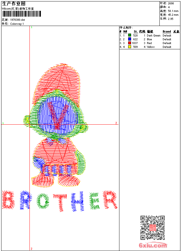 免费童装卡通花样 花版参数: 大小:8.41 KB / 尺寸:45*58[毫米] / 针数:2698针 / 线色:4 / 格式:dst / 版本:7 版带文件需绣花软件方可打开,可配色打印导出各种格式或直接上机绣。如无绣花软件可下载1:1模拟效果图。 图片信息:大小:39.78 kb 171 x 220(像素) dst下载 1:1图下载 关闭 花样推荐 免费童装卡通花样 免费童装卡通花样 免费童装卡通花样 免费童装卡通花样 免费童装卡通花样 免费童装卡通花样 免费童装卡通花样 免费童装卡通花样 免费童装卡通花样 免费童装卡通花样 上一个花样:免费童装卡通花样 下一个花样:免费童装卡通花样