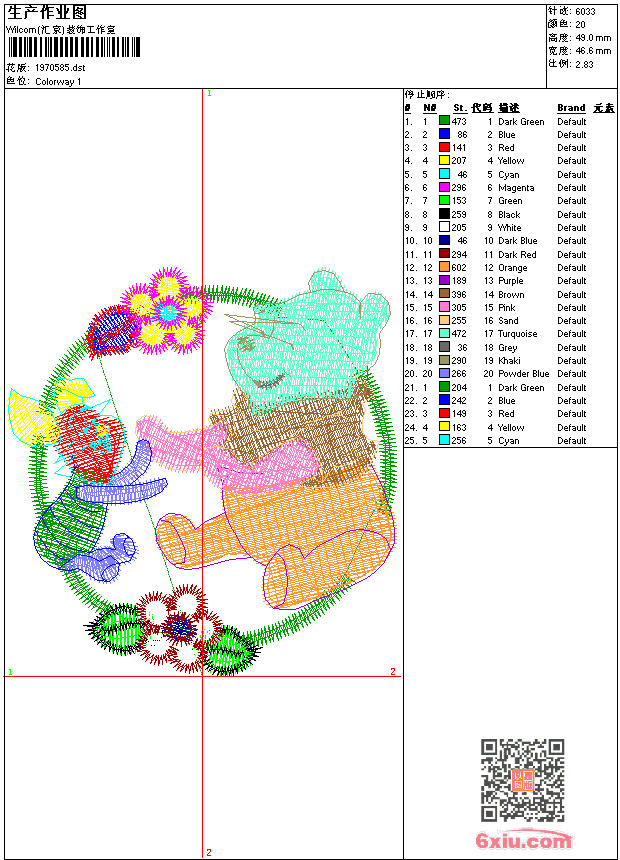 免费童装卡通花样 花版参数: 大小:18.18 KB / 尺寸:47*49[毫米] / 针数:6033针 / 线色:20 / 格式:dst / 版本:7 版带文件需绣花软件方可打开,可配色打印导出各种格式或直接上机绣。如无绣花软件可下载1:1模拟效果图。 图片信息:大小:55.80 kb 177 x 186(像素) dst下载 1:1图下载 关闭 花样推荐 免费童装卡通花样 免费童装卡通花样 免费童装卡通花样 免费童装卡通花样 免费童装卡通花样 免费童装卡通花样 免费童装卡通花样 免费童装卡通花样 免费童装卡通花样 免费童装卡通花样 上一个花样:免费童装卡通花样 下一个花样:免费童装卡通花样