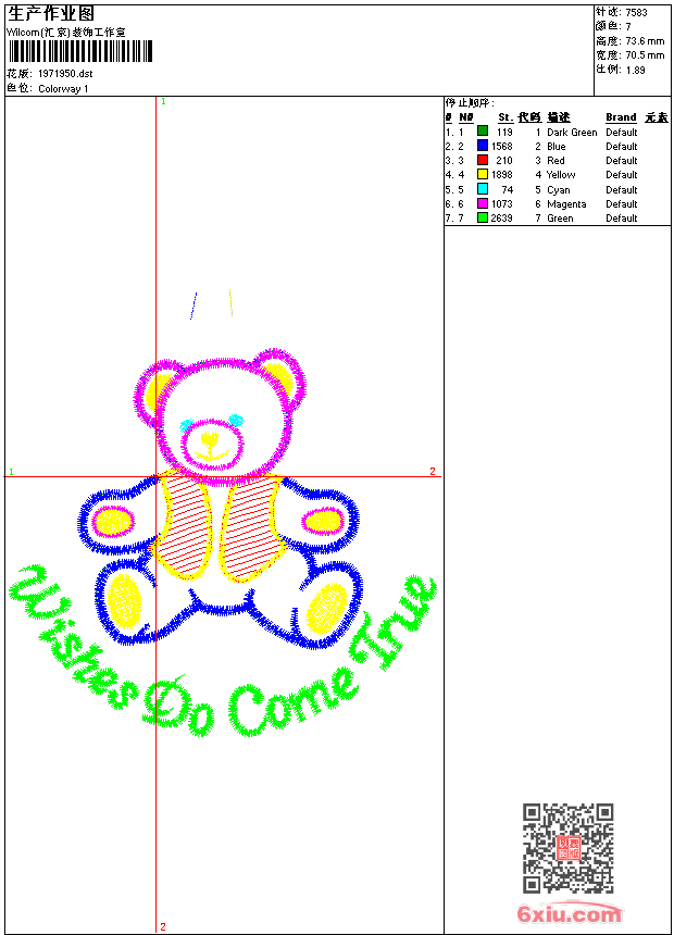 免费童装卡通花样 花版参数: 大小:22.72 KB / 尺寸:71*74[毫米] / 针数:7583针 / 线色:7 / 格式:dst / 版本:7 版带文件需绣花软件方可打开,可配色打印导出各种格式或直接上机绣。如无绣花软件可下载1:1模拟效果图。 图片信息:大小:54.34 kb 267 x 279(像素) dst下载 1:1图下载 关闭 花样推荐 免费童装卡通花样 免费童装卡通花样 免费童装卡通花样 免费童装卡通花样 免费童装卡通花样 免费童装卡通花样 免费童装卡通花样 免费童装卡通花样 免费童装卡通花样 免费童装卡通花样 上一个花样:免费童装卡通花样 下一个花样:免费童装卡通花样