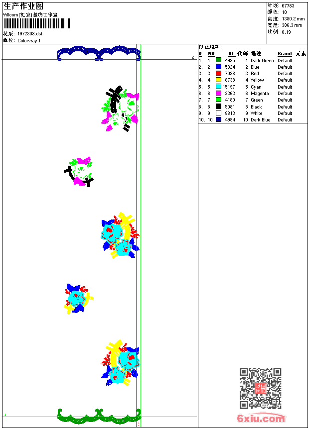 免费花样 花版参数: 大小:199.08 KB / 尺寸:306*1380[毫米] / 针数:67783针 / 线色:10 / 格式:dst / 版本:7 版带文件需绣花软件方可打开,可配色打印导出各种格式或直接上机绣。如无绣花软件可下载1:1模拟效果图。 图片信息:大小:2.12 M 1159 x 5221(像素) dst下载 1:1图下载 关闭 花样推荐 蜜峰免费花样 免费花样 免费花样 免费花样 免费花样 免费花样 kpapa免费花样 猴子,字母免费花样 免费花样 免费花样 上一个花样:免费花样 下一个花样:蜜峰免费花样