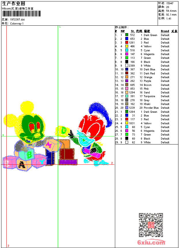 米奇,唐老鸭免费花样 花版参数: 大小:47.22 KB / 尺寸:92*59[毫米] / 针数:15947针 / 线色:20 / 格式:dst / 版本:7 版带文件需绣花软件方可打开,可配色打印导出各种格式或直接上机绣。如无绣花软件可下载1:1模拟效果图。 图片信息:大小:119.88 kb 349 x 225(像素) dst下载 1:1图下载 关闭 花样推荐 免费花样 免费花样 免费花样 免费花样 免费花样 免费花样 免费花样 免费花样 免费花样 免费花样 上一个花样:免费花样 下一个花样:免费花样