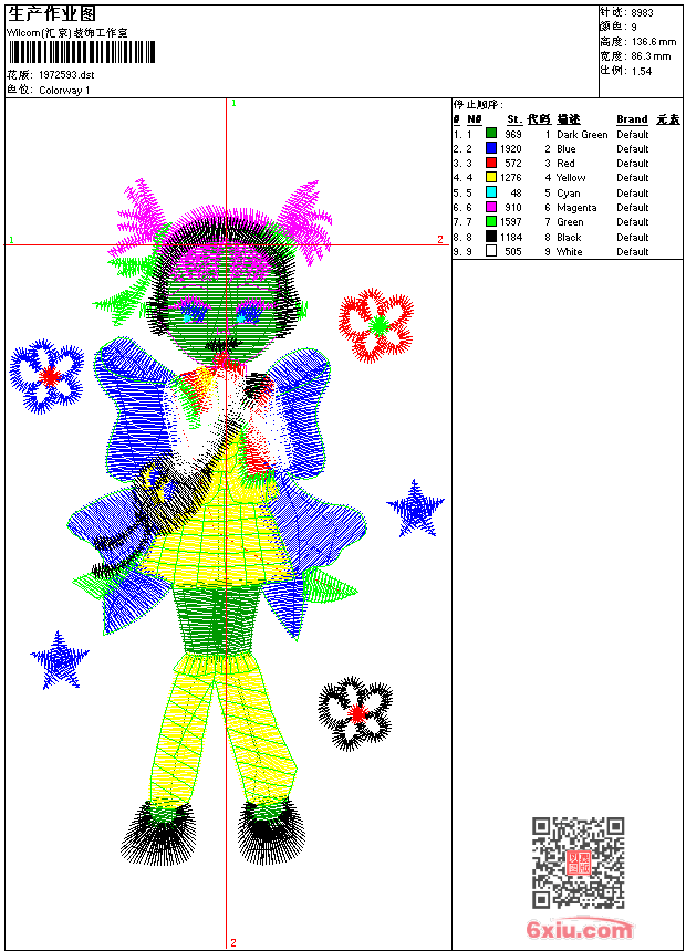 免费花样 花版参数: 大小:26.82 KB / 尺寸:86*137[毫米] / 针数:8983针 / 线色:9 / 格式:dst / 版本:7 版带文件需绣花软件方可打开,可配色打印导出各种格式或直接上机绣。如无绣花软件可下载1:1模拟效果图。 图片信息:大小:189.40 kb 327 x 517(像素) dst下载 1:1图下载 关闭 花样推荐 免费花样 免费花样 免费花样 骷髅免费花样 免费花样 免费花样 免费花样 猫免费花样 免费花样 免费花样 上一个花样:免费花样 下一个花样:免费花样