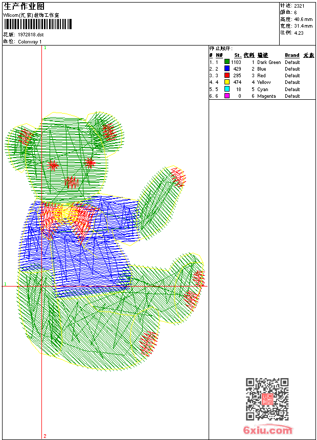 熊免费花样 花版参数: 大小:7.30 KB / 尺寸:31*41[毫米] / 针数:2321针 / 线色:6 / 格式:dst / 版本:7 版带文件需绣花软件方可打开,可配色打印导出各种格式或直接上机绣。如无绣花软件可下载1:1模拟效果图。 图片信息:大小:32.76 kb 119 x 154(像素) dst下载 1:1图下载 关闭 花样推荐 朵拉免费花样 免费花样 免费花样 免费花样 免费花样 LV免费花样 免费花样 adidas免费花样 免费花样 免费花样 上一个花样:免费花样 下一个花样:朵拉免费花样