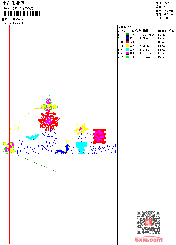 免费花样 花版参数: 大小:9.25 KB / 尺寸:98*67[毫米] / 针数:2988针 / 线色:7 / 格式:dst / 版本:7 版带文件需绣花软件方可打开,可配色打印导出各种格式或直接上机绣。如无绣花软件可下载1:1模拟效果图。 图片信息:大小:46.86 kb 371 x 255(像素) dst下载 1:1图下载 关闭 花样推荐 免费花样 免费花样 免费花样 免费花样 免费花样 免费花样 免费花样 免费花样 免费花样 免费花样 上一个花样:免费花样 下一个花样:免费花样