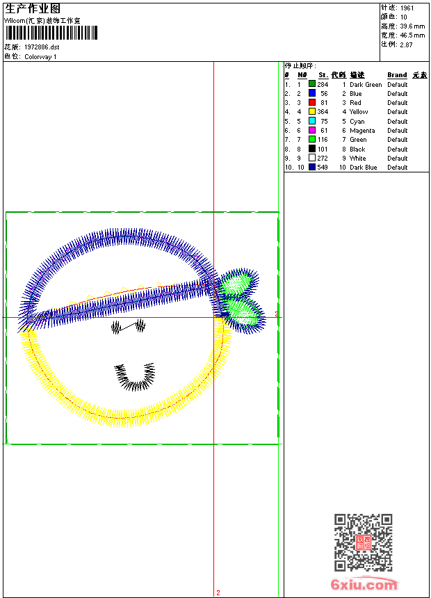 免费花样 花版参数: 大小:6.25 KB / 尺寸:47*40[毫米] / 针数:1961针 / 线色:10 / 格式:dst / 版本:7 版带文件需绣花软件方可打开,可配色打印导出各种格式或直接上机绣。如无绣花软件可下载1:1模拟效果图。 图片信息:大小:24.48 kb 176 x 150(像素) dst下载 1:1图下载 关闭 花样推荐 adids免费花样 免费花样 免费花样 免费花样 免费花样 免费花样 鱼免费花样 免费花样 猫免费花样 免费花样 上一个花样:免费花样 下一个花样:adids免费花样