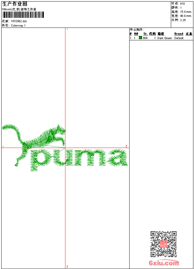 puma免费花样 花版参数: 大小:3.17 KB / 尺寸:41*15[毫米] / 针数:910针 / 线色:1 / 格式:dst / 版本:7 版带文件需绣花软件方可打开,可配色打印导出各种格式或直接上机绣。如无绣花软件可下载1:1模拟效果图。 图片信息:大小:9.04 kb 154 x 57(像素) dst下载 1:1图下载 关闭 花样推荐 鸟免费花样 免费花样 免费花样 免费花样 马免费花样 免费花样 免费花样 免费花样 免费花样 免费花样 上一个花样:免费花样 下一个花样:鸟免费花样