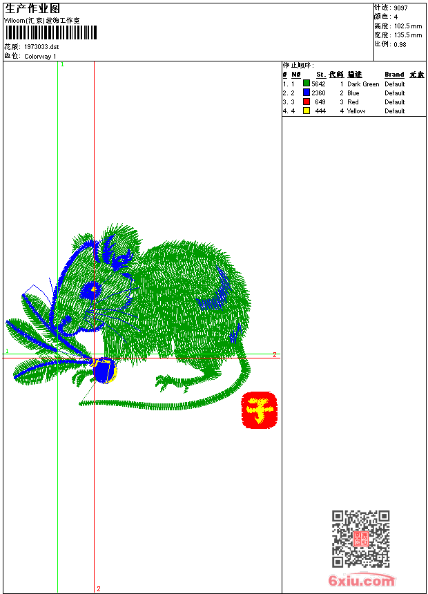 老鼠免费花样 花版参数: 大小:27.15 KB / 尺寸:136*103[毫米] / 针数:9097针 / 线色:4 / 格式:dst / 版本:7 版带文件需绣花软件方可打开,可配色打印导出各种格式或直接上机绣。如无绣花软件可下载1:1模拟效果图。 图片信息:大小:260.66 kb 513 x 388(像素) dst下载 1:1图下载 关闭 花样推荐 免费花样 免费花样 免费花样 免费花样 骷髅免费花样 老鼠免费花样 免费花样 免费花样 免费花样 皇冠免费花样 上一个花样:免费花样 下一个花样:免费花样