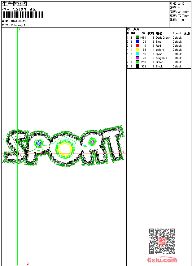 免费花样 花版参数: 大小:7.57 KB / 尺寸:71*24[毫米] / 针数:2413针 / 线色:8 / 格式:dst / 版本:7 版带文件需绣花软件方可打开,可配色打印导出各种格式或直接上机绣。如无绣花软件可下载1:1模拟效果图。 图片信息:大小:38.60 kb 268 x 92(像素) dst下载 1:1图下载 关闭 花样推荐 免费花样 免费花样 免费花样 免费花样 老鼠免费花样 免费花样 免费花样 免费花样 免费花样 骷髅免费花样 上一个花样:免费花样 下一个花样:免费花样
