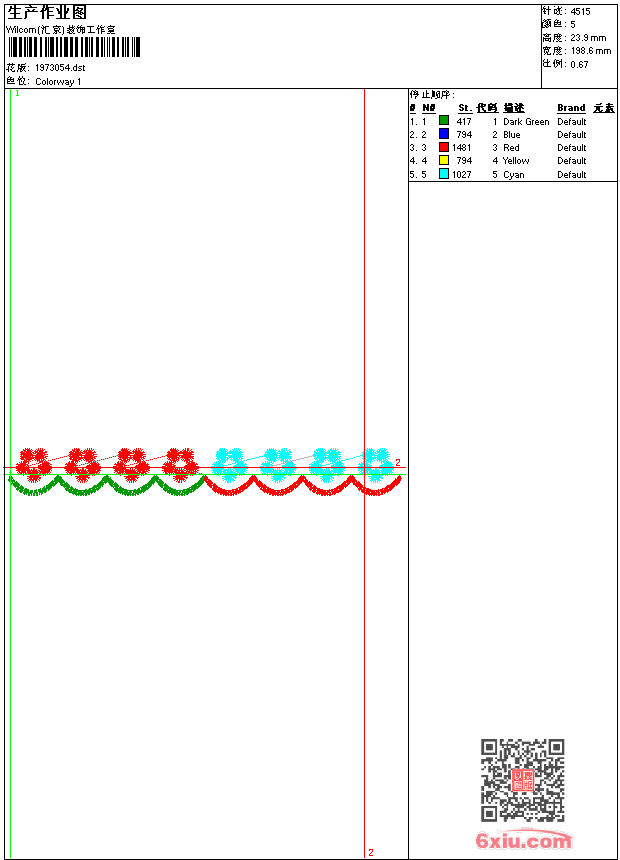 免费花样 花版参数: 大小:13.73 KB / 尺寸:199*24[毫米] / 针数:4515针 / 线色:5 / 格式:dst / 版本:7 版带文件需绣花软件方可打开,可配色打印导出各种格式或直接上机绣。如无绣花软件可下载1:1模拟效果图。 图片信息:大小:86.92 kb 752 x 91(像素) dst下载 1:1图下载 关闭 花样推荐 免费花样 免费花样 免费花样 免费花样 免费花样 免费花样 免费花样 免费花样 免费花样 免费花样 上一个花样:免费花样 下一个花样:免费花样