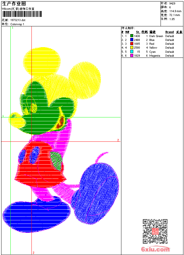 免费花样 花版参数: 大小:28.12 KB / 尺寸:72*115[毫米] / 针数:9429针 / 线色:6 / 格式:dst / 版本:7 版带文件需绣花软件方可打开,可配色打印导出各种格式或直接上机绣。如无绣花软件可下载1:1模拟效果图。 图片信息:大小:135.31 kb 273 x 435(像素) dst下载 1:1图下载 关闭 花样推荐 免费花样 免费花样 免费花样 免费花样 免费花样 免费花样 免费花样 免费花样 免费花样 免费花样 上一个花样:免费花样 下一个花样:免费花样