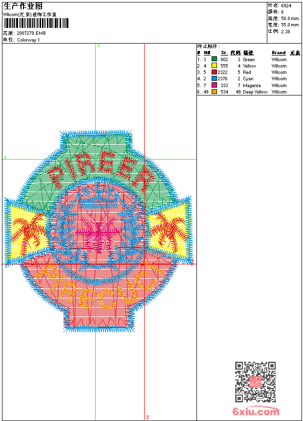 章仔 花版参数: 大小:58.50 KB / 尺寸:55*59[毫米] / 针数:6924针 / 线色:6 / 格式:emb / 版本:9 版带文件需绣花软件方可打开,可配色打印导出各种格式或直接上机绣。如无绣花软件可下载1:1模拟效果图。 图片信息:大小:81.50 kb 209 x 223(像素) emb下载 1:1图下载 关闭 花样推荐 章仔 章仔 虎头 国旗 人物 孙悟空 齐天大圣 西游记 虎 章仔字母 服装 男装 标 章仔字母 服装 童装 男装 章仔字母 服装 章仔字母 服装 上一个花样:章仔 下一个花样:章仔