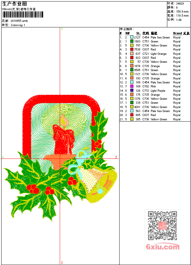 免费花样 花版参数: 大小:237.50 KB / 尺寸:118*159[毫米] / 针数:34929针 / 线色:8 / 格式:emb / 版本:e3 版带文件需绣花软件方可打开,可配色打印导出各种格式或直接上机绣。如无绣花软件可下载1:1模拟效果图。 图片信息:大小:372.51 kb 449 x 602(像素) emb下载 1:1图下载 关闭 花样推荐 免费花样 免费花样 免费花样 免费花样 免费花样 免费花样 免费花样 免费花样 免费花样 免费花样 上一个花样:免费花样 下一个花样:免费花样