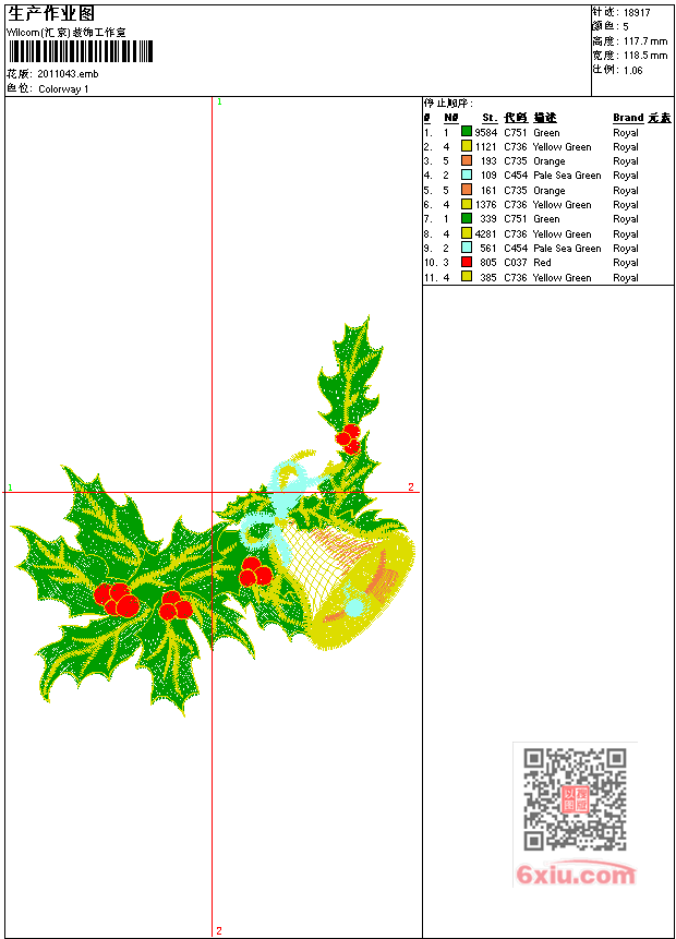 免费花样 花版参数: 大小:155.00 KB / 尺寸:118*118[毫米] / 针数:18917针 / 线色:5 / 格式:emb / 版本:e3 版带文件需绣花软件方可打开,可配色打印导出各种格式或直接上机绣。如无绣花软件可下载1:1模拟效果图。 图片信息:大小:200.14 kb 449 x 446(像素) emb下载 1:1图下载 关闭 花样推荐 免费花样 免费花样 免费花样 免费花样 免费花样 免费花样 免费花样 免费花样 免费花样 免费花样 上一个花样:免费花样 下一个花样:免费花样