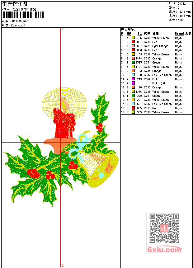 免费花样 花版参数: 大小:187.50 KB / 尺寸:118*122[毫米] / 针数:24312针 / 线色:7 / 格式:emb / 版本:e3 版带文件需绣花软件方可打开,可配色打印导出各种格式或直接上机绣。如无绣花软件可下载1:1模拟效果图。 图片信息:大小:266.03 kb 449 x 463(像素) emb下载 1:1图下载 关闭 花样推荐 免费花样 免费花样 免费花样 免费花样 免费花样 免费花样 免费花样 免费花样 免费花样 免费花样 上一个花样:免费花样 下一个花样:免费花样