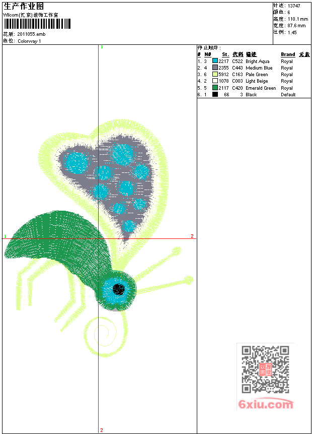免费花样 花版参数: 大小:93.00 KB / 尺寸:88*110[毫米] / 针数:13747针 / 线色:6 / 格式:emb / 版本:e3 版带文件需绣花软件方可打开,可配色打印导出各种格式或直接上机绣。如无绣花软件可下载1:1模拟效果图。 图片信息:大小:158.88 kb 332 x 417(像素) emb下载 1:1图下载 关闭 花样推荐 免费花样 免费花样 免费花样 免费花样 免费花样 免费花样 免费花样 免费花样 免费花样 免费花样 上一个花样:免费花样 下一个花样:免费花样