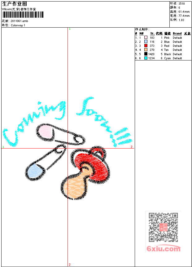 免费花样 花版参数: 大小:44.50 KB / 尺寸:77*61[毫米] / 针数:3518针 / 线色:6 / 格式:emb / 版本:e1.5 版带文件需绣花软件方可打开,可配色打印导出各种格式或直接上机绣。如无绣花软件可下载1:1模拟效果图。 图片信息:大小:47.20 kb 293 x 233(像素) emb下载 1:1图下载 关闭 花样推荐 免费花样 免费花样 免费花样 免费花样 免费花样 免费花样 免费花样 免费花样 免费花样 免费花样 上一个花样:免费花样 下一个花样:免费花样