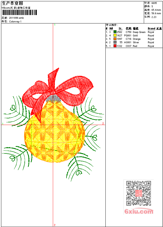 免费花样 花版参数: 大小:76.50 KB / 尺寸:59*65[毫米] / 针数:6695针 / 线色:5 / 格式:emb / 版本:e3 版带文件需绣花软件方可打开,可配色打印导出各种格式或直接上机绣。如无绣花软件可下载1:1模拟效果图。 图片信息:大小:72.66 kb 222 x 248(像素) emb下载 1:1图下载 收藏本图 关闭 花样推荐 免费花样 免费花样 免费花样 免费花样 免费花样 免费花样 免费花样 免费花样 免费花样 免费花样 上一个花样:免费花样 下一个花样:免费花样