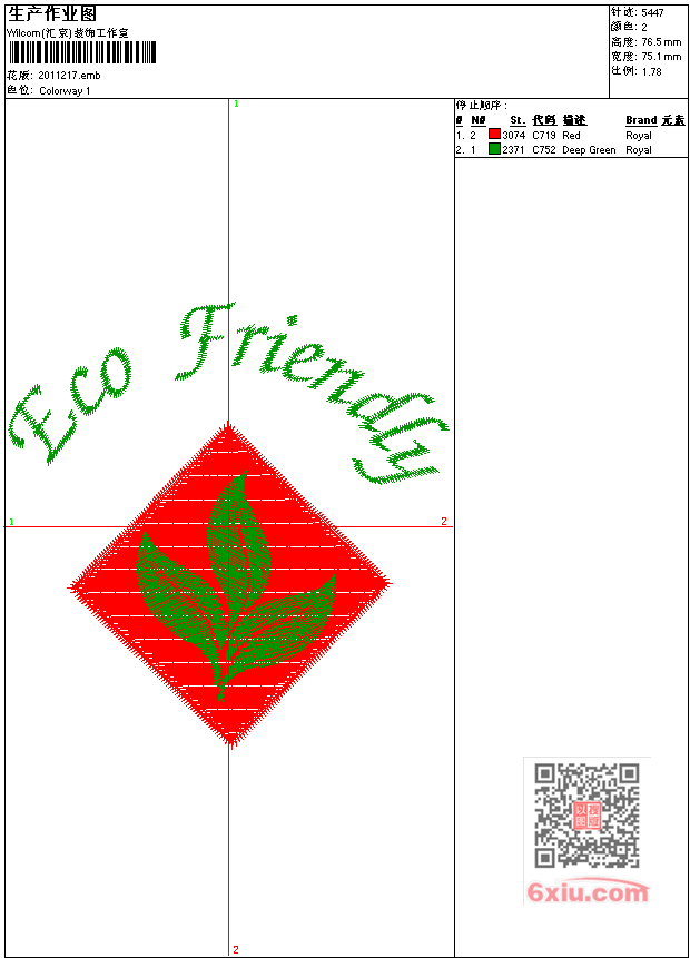 免费花样 花版参数: 大小:60.50 KB / 尺寸:75*77[毫米] / 针数:5447针 / 线色:2 / 格式:emb / 版本:e3 版带文件需绣花软件方可打开,可配色打印导出各种格式或直接上机绣。如无绣花软件可下载1:1模拟效果图。 图片信息:大小:61.36 kb 284 x 290(像素) emb下载 1:1图下载 关闭 花样推荐 免费花样 免费花样 免费花样 免费花样 免费花样 免费花样 免费花样 免费花样 免费花样 免费花样 上一个花样:免费花样 下一个花样:免费花样