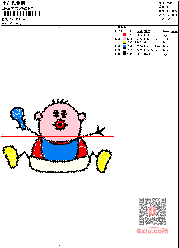 免费花样 花版参数: 大小:94.00 KB / 尺寸:73*49[毫米] / 针数:7949针 / 线色:6 / 格式:emb / 版本:e3 版带文件需绣花软件方可打开,可配色打印导出各种格式或直接上机绣。如无绣花软件可下载1:1模拟效果图。 图片信息:大小:59.12 kb 275 x 187(像素) emb下载 1:1图下载 关闭 花样推荐 免费花样 免费花样 免费花样 免费花样 免费花样 免费花样 免费花样 免费花样 免费花样 免费花样 上一个花样:免费花样 下一个花样:免费花样