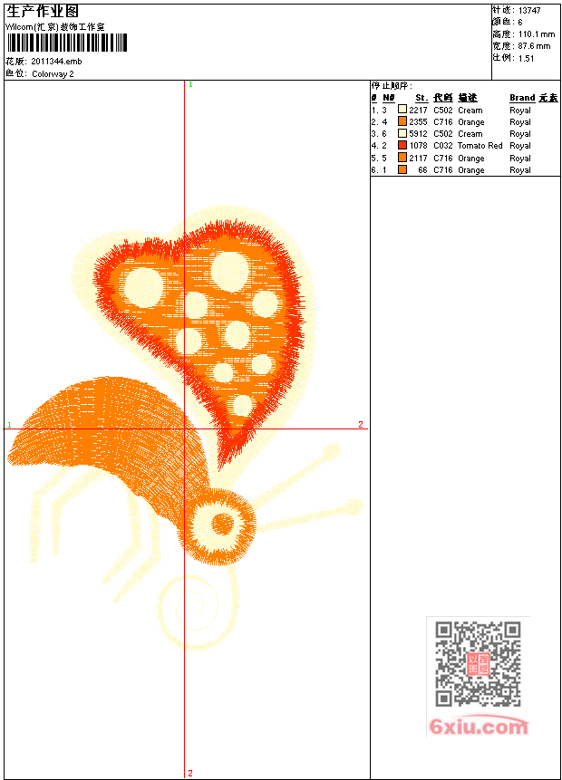 免费花样 花版参数: 大小:95.50 KB / 尺寸:88*110[毫米] / 针数:13747针 / 线色:6 / 格式:emb / 版本:e3 版带文件需绣花软件方可打开,可配色打印导出各种格式或直接上机绣。如无绣花软件可下载1:1模拟效果图。 图片信息:大小:160.09 kb 332 x 417(像素) emb下载 1:1图下载 关闭 花样推荐 免费花样 免费花样 免费花样 免费花样 免费花样 免费花样 免费花样 免费花样 免费花样 免费花样 上一个花样:免费花样 下一个花样:免费花样