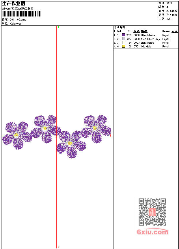 免费花样 花版参数: 大小:51.00 KB / 尺寸:75*30[毫米] / 针数:3821针 / 线色:4 / 格式:emb / 版本:e3 版带文件需绣花软件方可打开,可配色打印导出各种格式或直接上机绣。如无绣花软件可下载1:1模拟效果图。 图片信息:大小:40.79 kb 283 x 112(像素) emb下载 1:1图下载 关闭 花样推荐 免费花样 免费花样 免费花样 免费花样 免费花样 免费花样 免费花样 免费花样 免费花样 免费花样 上一个花样:免费花样 下一个花样:免费花样