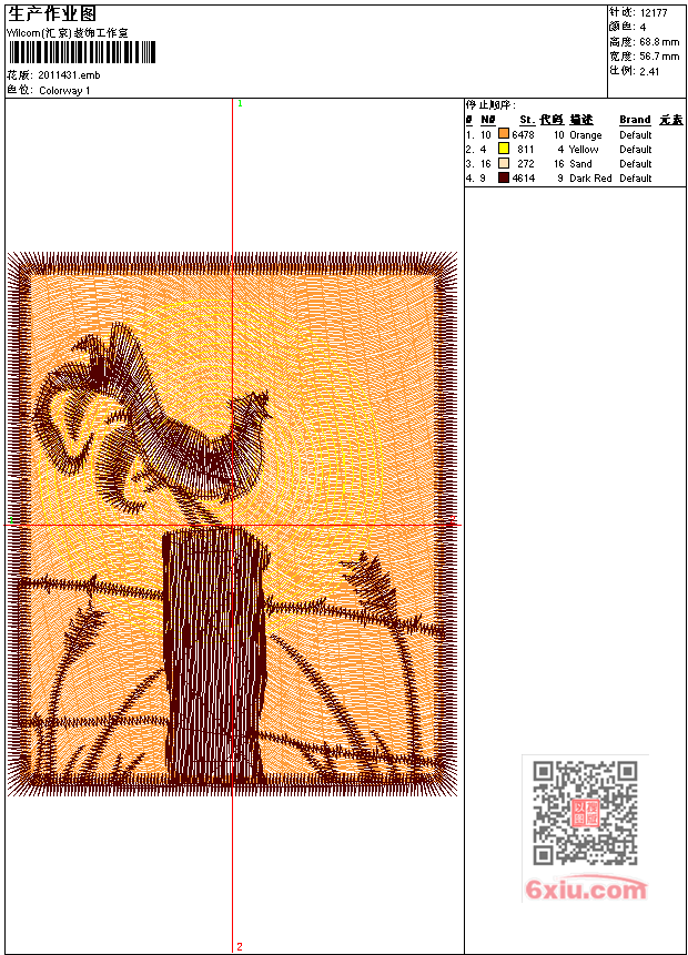免费花样 花版参数: 大小:62.50 KB / 尺寸:57*69[毫米] / 针数:12177针 / 线色:4 / 格式:emb / 版本:2006 版带文件需绣花软件方可打开,可配色打印导出各种格式或直接上机绣。如无绣花软件可下载1:1模拟效果图。 图片信息:大小:136.73 kb 215 x 261(像素) emb下载 1:1图下载 关闭 花样推荐 免费花样 免费花样 免费花样 免费花样 免费花样 免费花样 免费花样 免费花样 免费花样 免费花样 上一个花样:免费花样 下一个花样:免费花样