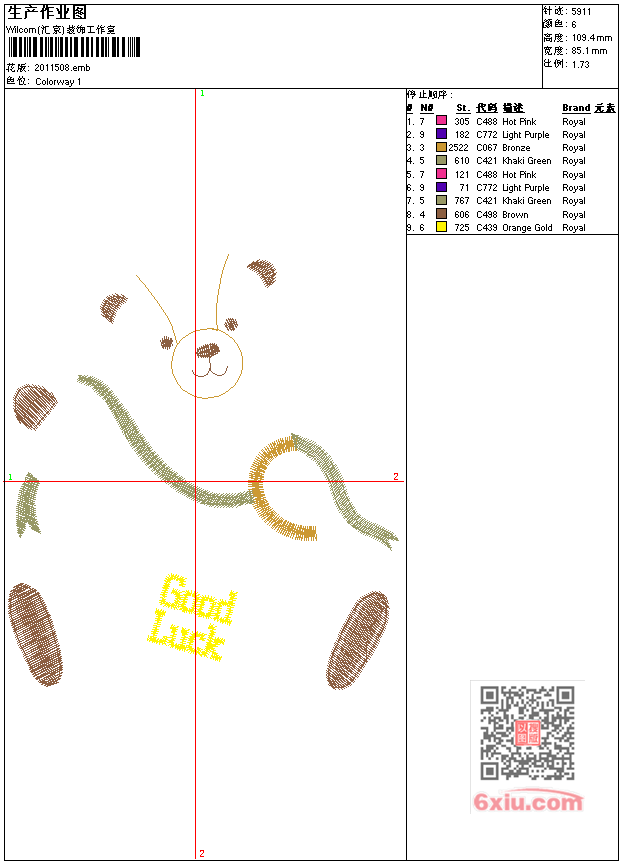 免费花样 花版参数: 大小:85.50 KB / 尺寸:85*109[毫米] / 针数:5911针 / 线色:6 / 格式:emb / 版本:e3 版带文件需绣花软件方可打开,可配色打印导出各种格式或直接上机绣。如无绣花软件可下载1:1模拟效果图。 图片信息:大小:49.01 kb 322 x 414(像素) emb下载 1:1图下载 关闭 花样推荐 免费花样 免费花样 免费花样 免费花样 免费花样 免费花样 免费花样 免费花样 免费花样 免费花样 上一个花样:免费花样 下一个花样:免费花样