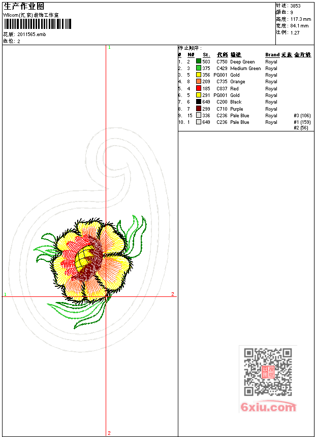 免费花样 花版参数: 大小:122.50 KB / 尺寸:84*117[毫米] / 针数:3853针 / 线色:9 / 格式:emb / 版本:e3 版带文件需绣花软件方可打开,可配色打印导出各种格式或直接上机绣。如无绣花软件可下载1:1模拟效果图。 图片信息:大小:123.76 kb 319 x 444(像素) emb下载 1:1图下载 关闭 花样推荐 免费花样 免费花样 免费花样 免费花样 免费花样 免费花样 免费花样 免费花样 免费花样 免费花样 上一个花样:免费花样 下一个花样:免费花样