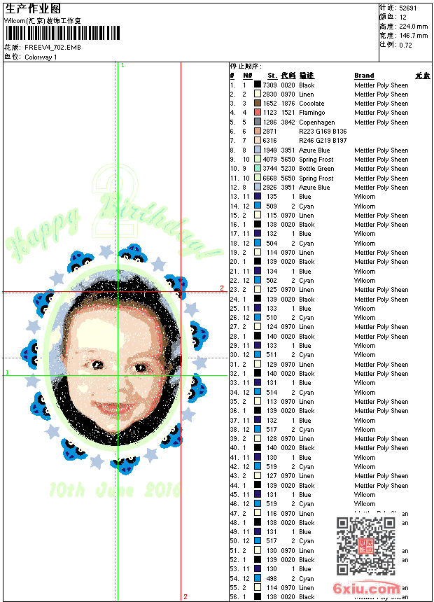 免费花样 花版参数: 大小:2.24 MB / 尺寸:147*224[毫米] / 针数:52691针 / 线色:12 / 格式:emb / 版本:e4.x 版带文件需绣花软件方可打开,可配色打印导出各种格式或直接上机绣。如无绣花软件可下载1:1模拟效果图。 图片信息:大小:544.28 kb 555 x 848(像素) emb下载 1:1图下载 关闭 花样推荐 免费花样 免费花样 免费花样 免费花样 免费花样 免费花样 免费花样 免费花样 免费花样 免费花样 上一个花样:免费花样 下一个花样:免费花样