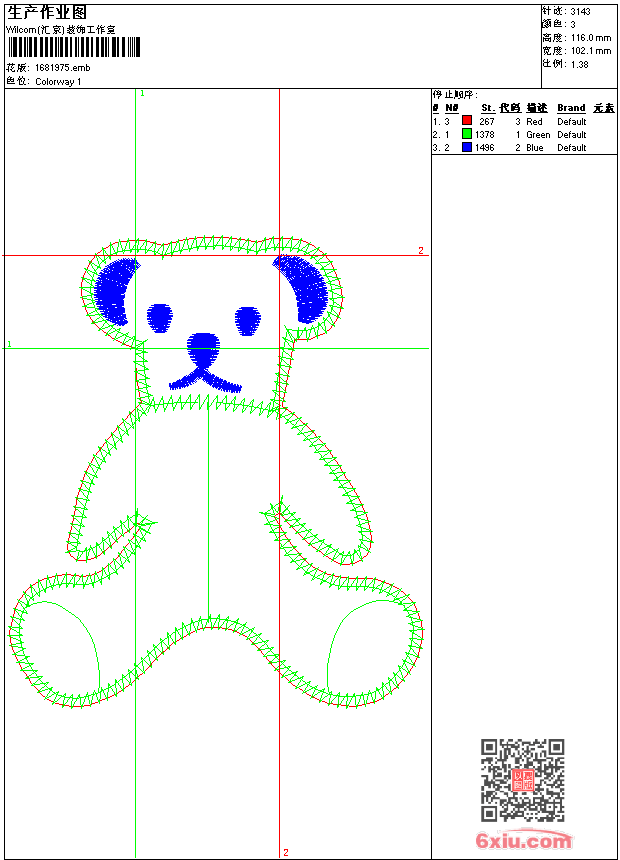 迷你贴布小熊图案版图案 花版参数: 大小:43.50 KB / 尺寸:102*116[毫米] / 针数:3143针 / 线色:3 / 格式:emb / 版本:9 版带文件需绣花软件方可打开,可配色打印导出各种格式或直接上机绣。如无绣花软件可下载1:1模拟效果图。 图片信息:大小:89.78 kb 387 x 439(像素) emb下载 1:1图下载 关闭 花样推荐 经典唐装民族风牡丹大花图案 复杂抽象的网布特种图案样 抽象复杂的女装上衣图案版 经典polo男装骑马徽章贴标版带 牛仔裤袋图案烫钻图案 迷你大象图案警察police小贴标 经典小小熊图案logo 男装徽章贴标 多色多贴布女童图案卡通版带 脸谱刺绣-图案脸谱 上一个花样:超经典小鳄鱼LOGO图案 下一个花样:经典唐装民族风牡丹大花图案
