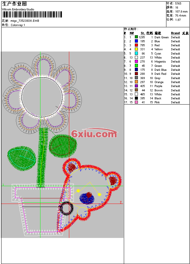 贴布熊 花版参数: 大小:81.50 KB / 尺寸:70*108[毫米] / 针数:5765针 / 线色:16 / 格式:emb / 版本:wilcom e2 版带文件需绣花软件方可打开,可配色打印导出各种格式或直接上机绣。如无绣花软件可下载1:1模拟效果图。 图片信息:大小:88.41 kb 267 x 408(像素) emb下载 1:1图下载 关闭 花样推荐 熊 贴布 翅膀 小花 舞者 狮标 章仔 蝴蝶 长耳兔 靓花 free dst转存的emb 靓花 上一个花样:polo 下一个花样:熊