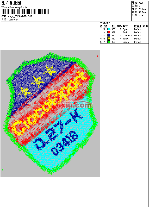 五角星 章仔 花版参数: 大小:78.50 KB / 尺寸:57*73[毫米] / 针数:9266针 / 线色:6 / 格式:emb / 版本:e2 版带文件需绣花软件方可打开,可配色打印导出各种格式或直接上机绣。如无绣花软件可下载1:1模拟效果图。 图片信息:大小:102.56 kb 215 x 275(像素) emb下载 1:1图下载 关闭 花样推荐 盾牌 章 章仔 熊 贴布 抽像鹰 狐狸 眼睛 骷髅 PEAK free logo 男 章标 棒球 logo free 保罗 free polo 上一个花样:眼睛 free 下一个花样:盾牌 章