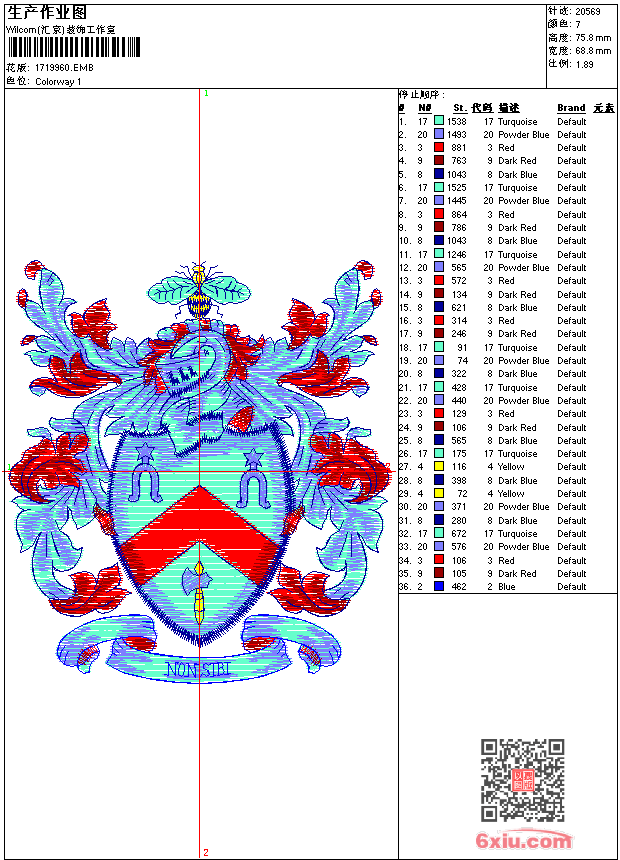 章仔球队标 花版参数: 大小:145.00 KB / 尺寸:69*76[毫米] / 针数:20569针 / 线色:7 / 格式:emb / 版本:6 版带文件需绣花软件方可打开,可配色打印导出各种格式或直接上机绣。如无绣花软件可下载1:1模拟效果图。 图片信息:大小:145.74 kb 261 x 287(像素) emb下载 1:1图下载 关闭 花样推荐 7-11店标 字数 熊布贴 LOVE珠片布贴 舵翅膀章仔 章仔皇室 章仔皇冠 女神山寨版 人物切格瓦拉英雄头像 章仔翅膀剑 上一个花样:狮标章仔 下一个花样:7-11店标