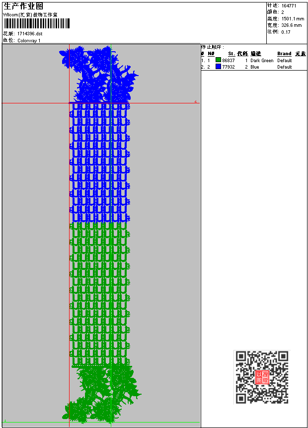 - dst花版参数: 大小:483.23 KB / 尺寸:327*1501[毫米] / 针数:164771针 / 线色:2 / 格式:dst / 版本:6