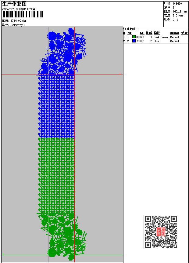 - dst花版参数: 大小:488.09 KB / 尺寸:316*1453[毫米] / 针数:166430针 / 线色:2 / 格式:dst / 版本:6