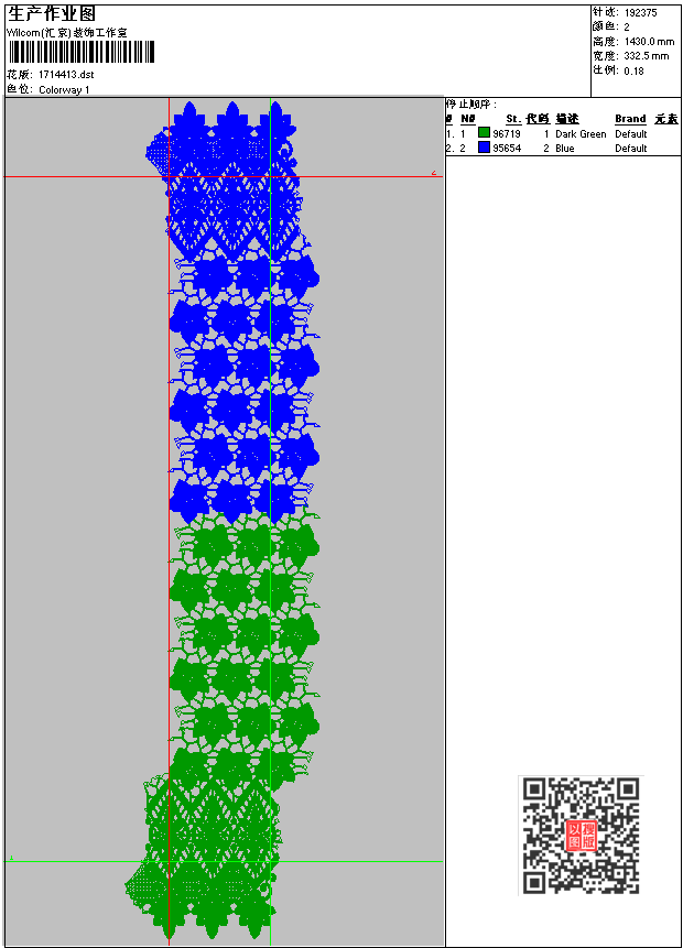 - dst花版参数: 大小:564.10 KB / 尺寸:333*1430[毫米] / 针数:192375针 / 线色:2 / 格式:dst / 版本:6