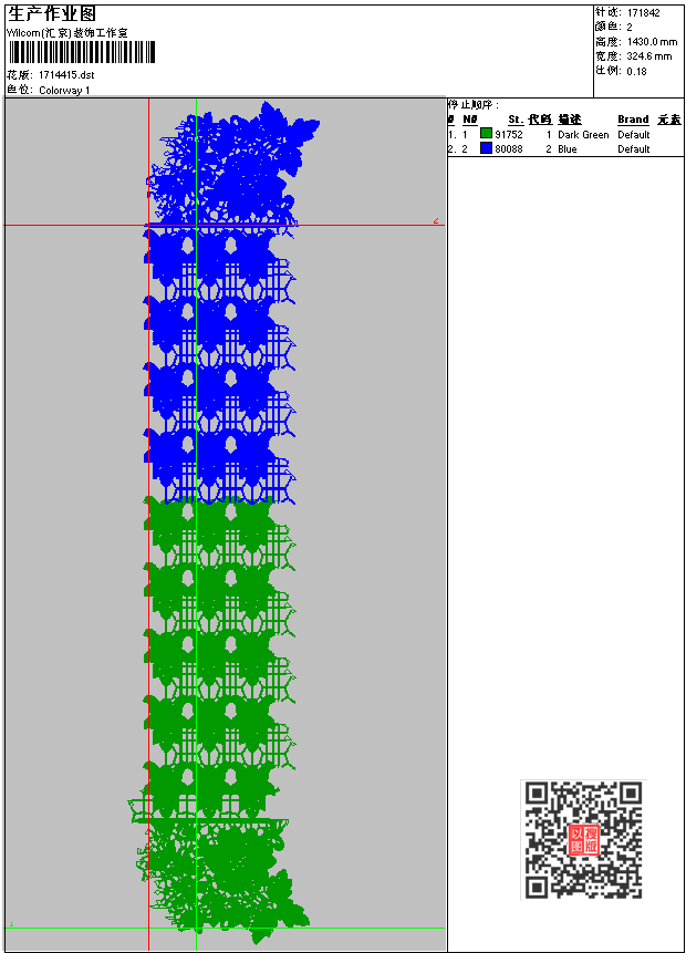 - dst花版参数: 大小:503.94 KB / 尺寸:325*1430[毫米] / 针数:171842针 / 线色:2 / 格式:dst / 版本:6