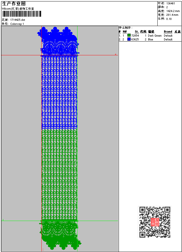 - dst花版参数: 大小:400.35 KB / 尺寸:281*1424[毫米] / 针数:136481针 / 线色:2 / 格式:dst / 版本:6