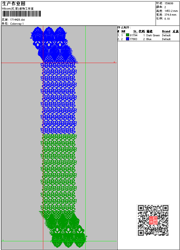 - dst花版参数: 大小:468.37 KB / 尺寸:375*1453[毫米] / 针数:159699针 / 线色:2 / 格式:dst / 版本:6