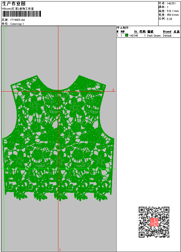 - dst花版参数: 大小:417.54 KB / 尺寸:458*516[毫米] / 针数:142351针 / 线色:1 / 格式:dst / 版本:6