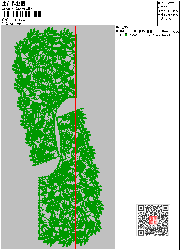 - dst花版参数: 大小:401.24 KB / 尺寸:335*803[毫米] / 针数:136787针 / 线色:1 / 格式:dst / 版本:6