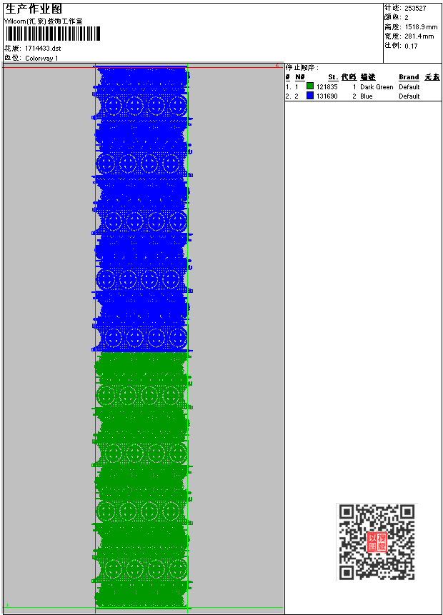 - dst花版参数: 大小:743.25 KB / 尺寸:281*1519[毫米] / 针数:253527针 / 线色:2 / 格式:dst / 版本:6