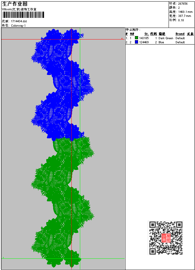 - dst花版参数: 大小:784.65 KB / 尺寸:388*1460[毫米] / 针数:267656针 / 线色:2 / 格式:dst / 版本:6