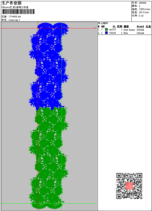 - dst花版参数: 大小:762.24 KB / 尺寸:298*1386[毫米] / 针数:260008针 / 线色:2 / 格式:dst / 版本:6