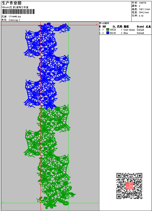 - dst花版参数: 大小:424.65 KB / 尺寸:394*1421[毫米] / 针数:144776针 / 线色:2 / 格式:dst / 版本:6