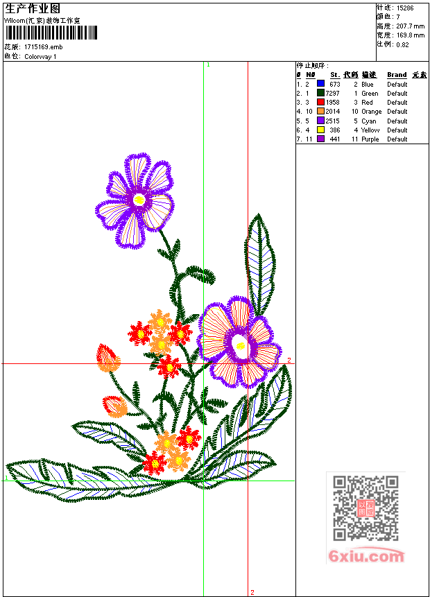 简单花草 点此上传花版兑乐绣币/现金 emb花版参数: 大小:116.00 KB / 尺寸:170*208[毫米] / 针数:15286针 / 线色:7 / 格式:emb / 版本:e1.5 版带文件需绣花软件方可打开,可配色打印导出各种格式或直接上机绣。如无绣花软件可下载1:1模拟效果图。 PNG图片信息:大小:0.3 (MB) /图宽*高:643x786(像素) 上传作者( *** ) 获得乐绣币:1个 emb下载 1:1图下载 关闭 相似花型推荐: 牡丹花经典 牡丹花 鱼 中国风 吉祥 鲤鱼 衣小角大花 传统牡丹花满幅大 菊花家纺 牡丹花经典传统 水溶满幅 福禄寿团纹-传统 戴安娜-精品乱针绣 人物 头像 祝愿您+财神祝福-精品 大花 前胸标-章仔 龙纹 菊花 上一个花样:章仔 下一个花样:牡丹花经典
