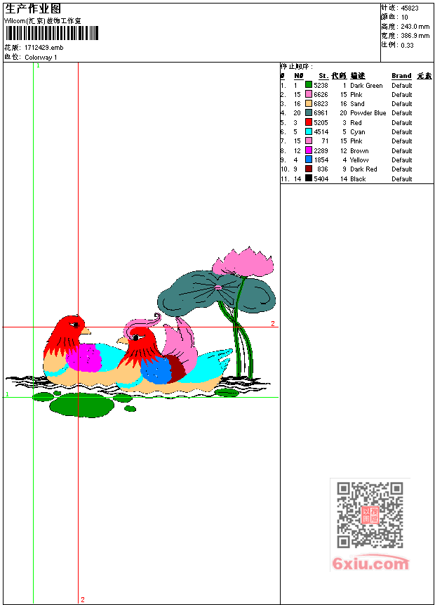鸳鸯工艺精品 点此上传花版兑乐绣币/现金 emb花版参数: 大小:498.50 KB / 尺寸:387*243[毫米] / 针数:45823针 / 线色:10 / 格式:emb / 版本:7 版带文件需绣花软件方可打开,可配色打印导出各种格式或直接上机绣。如无绣花软件可下载1:1模拟效果图。 PNG图片信息:大小:1.1 (MB) /图宽*高:1464x920(像素) 上传作者( 雷人*** ) 获得乐绣币:30个 emb下载 1:1图下载 关闭 相似花型推荐: 新疆维吾尔民族花帽 3 新疆维吾尔民族花帽 2 新疆维吾尔民族花帽 十字绣玫瑰花 海豚章仔 荣华工艺精品 梅兰竹菊-国画菊工艺精品 蝴蝶 蝴蝶 老虎头 宁静致远-字画工艺版 花好月圆牡丹花 富贵荣华牡丹花 网状镂空下摆大花中东复杂传统 竹石图工艺精品版 上一个花样:张国老骑驴工艺精品 下一个花样: 新疆维吾尔民族花帽 3